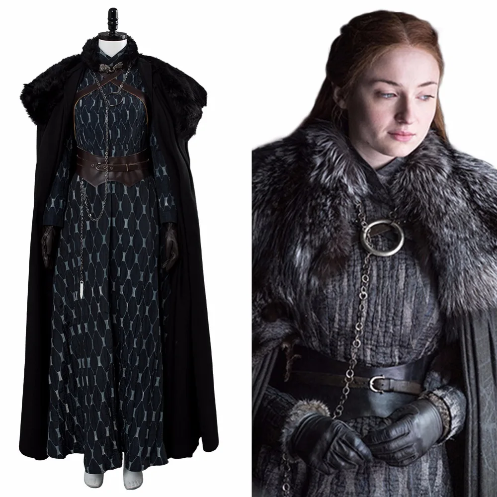 Game of Thrones Cosplay Sansa Stark Costume Season 8 Sansa Outfit Dress Suit Cape Adult Women Hallo