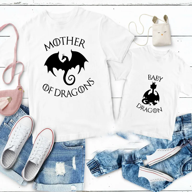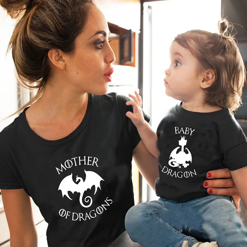 Game of Thrones Mother of Dragons Themed T Shirt Mommy and Me T-shirt Harajuku Mom and Baby Child F